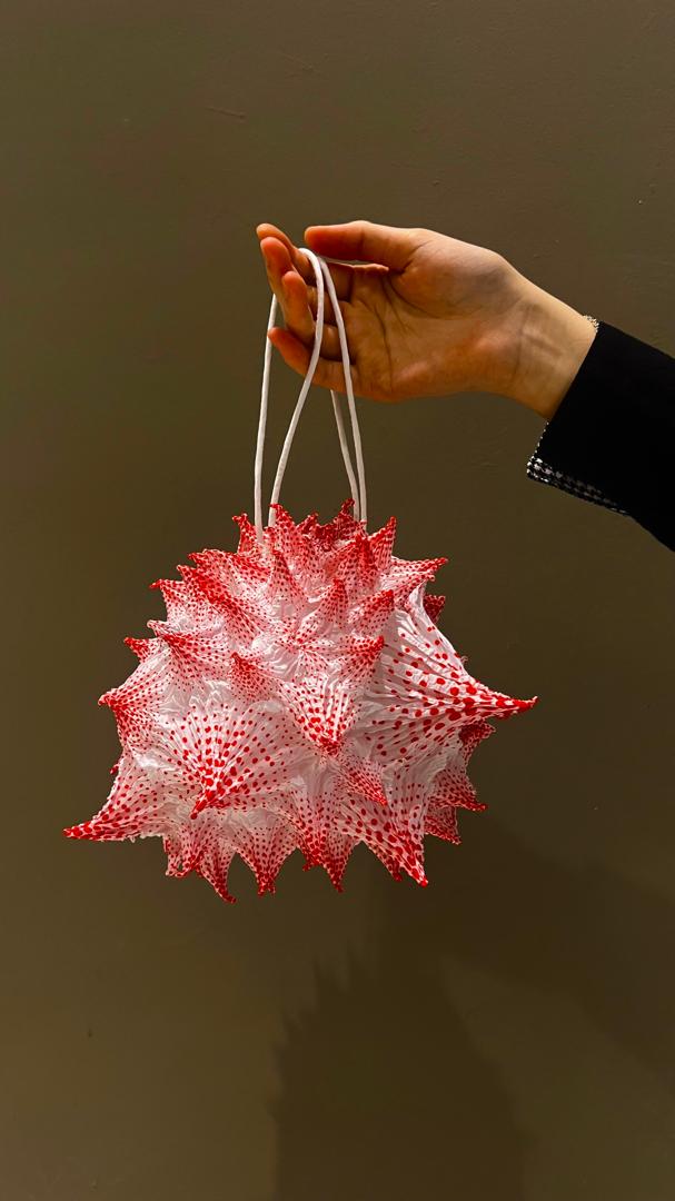 FUGUKU Sun Bag memiliki spikes yang tidak merata menyerupai bentuk matahari. Model ini didesain untuk dikenakan di pergelangan tangan dengan penutup tali serut dan lapisan dalam untuk mempertahankan bentuk bulatnya.